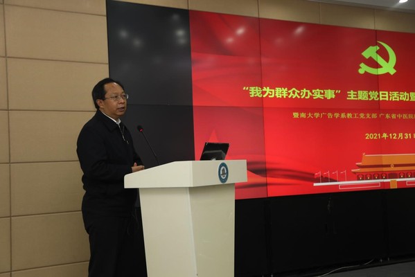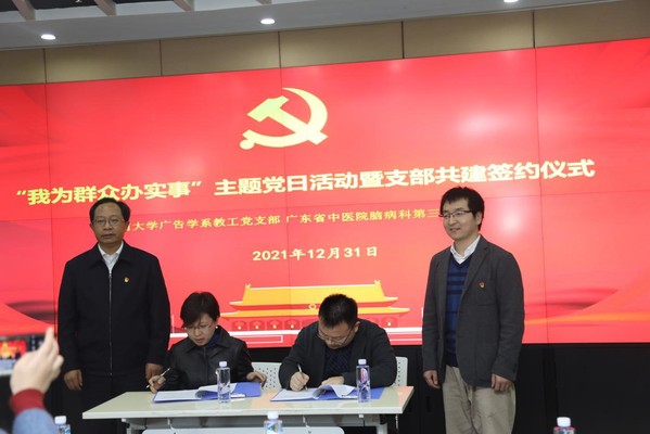 12月31日下午,广东省中医院脑病科第三党支部在广东省中医院党委书记翟理祥同志和党支部书记李艳同志带领下,与我院广告学系教工党支部在暨南大学第二文科楼516郁文报告厅开展了“我为群众办实事”的主题党日活动,并举行党支部共建签约仪式。出席此次活动的学院领导有新闻与传播学院党委书记刘涛,传播与国家治理研究院院长杨先顺,工会主席姚淑兰。