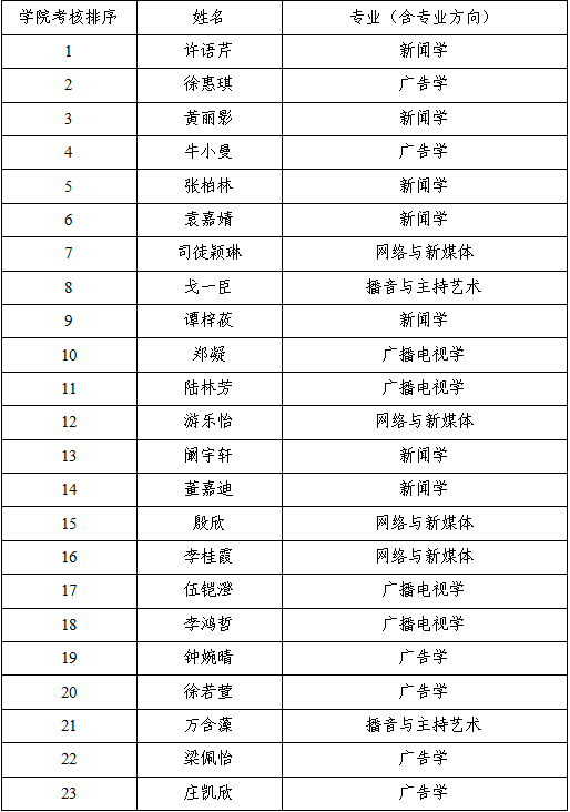 二、2025届新闻与传播学院普通类推免生名额综合评价排序