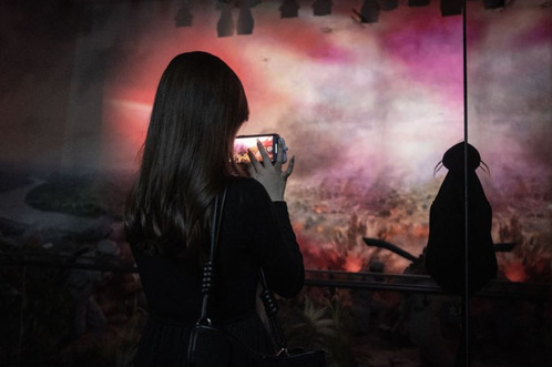 同学在粤北长征纪念馆拍照记录