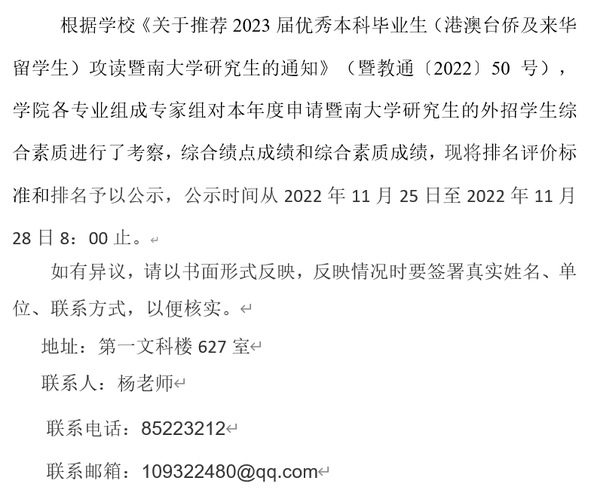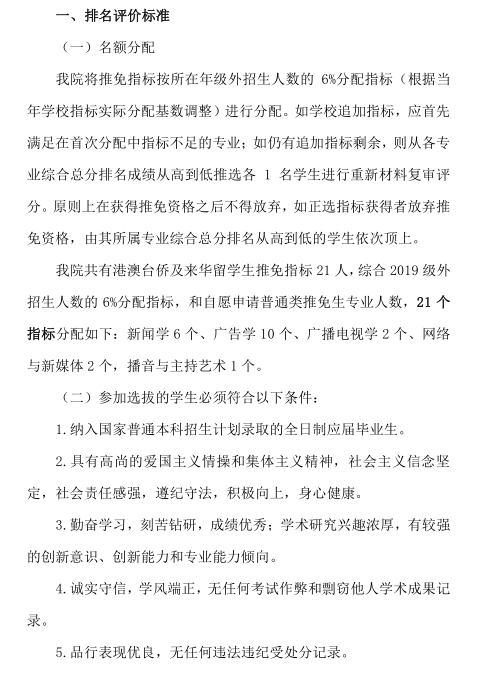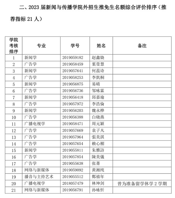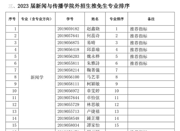 新闻与传播学院2023届外招生遴选推免生排名评价标准和排名公示