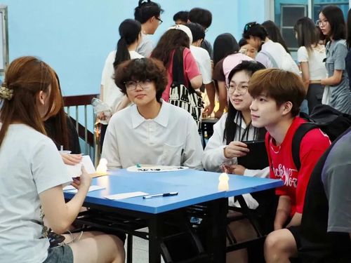 此外,活动现场还设置了许多传统手工艺摊位,如书法团扇制作、灯笼制作、蒙眼吃月饼和投壶等小游戏。在团扇摊位,老师和同学们共同创作属于自己的团扇,将奇思妙想付诸团扇之上,一起体悟中华优秀传统文化的艺术之美。