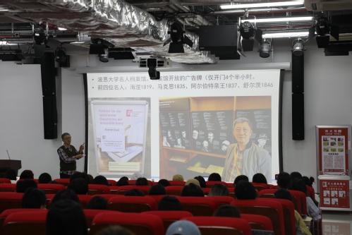 讲座伊始,陈力丹即带领在场师生进行了一场跨越时空的历史探索:考察与马克思直接有关的遗址,感受马克思故乡特里尔的文化传统、周边环境、宗教氛围,正如陈力丹所讲:“马克思正是在那样的环境的熏陶下成长、接受启蒙教育,他童年、少年生活的环境、所培育的最初思想和情怀,影响了马克思一生”。陈老师通过展示大量珍贵的历史文献、照片及多媒体资料,生动地再现复杂时代氛围中马克思的生命历程和思想发展的轨迹。